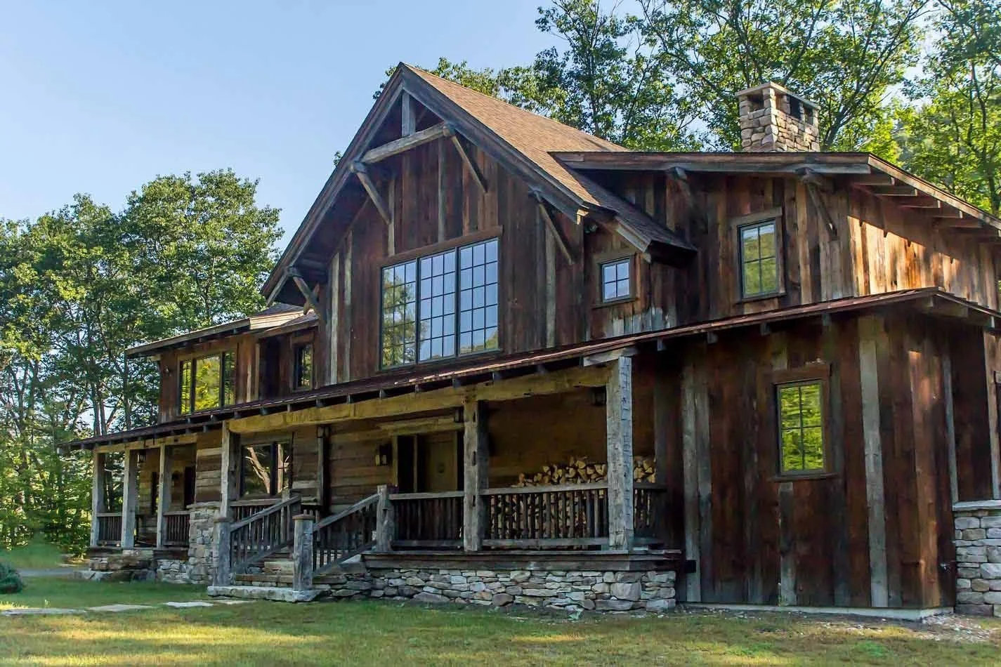 Angler’s Retreat is situated on the bank of the pristine West River near Stratton, VT. This rustic home features a reclaimed antique timber frame sourced from a decommissioned barn in Pennsylvania. The entire residence is clad in reclaimed lumber with log accents both inside and out.